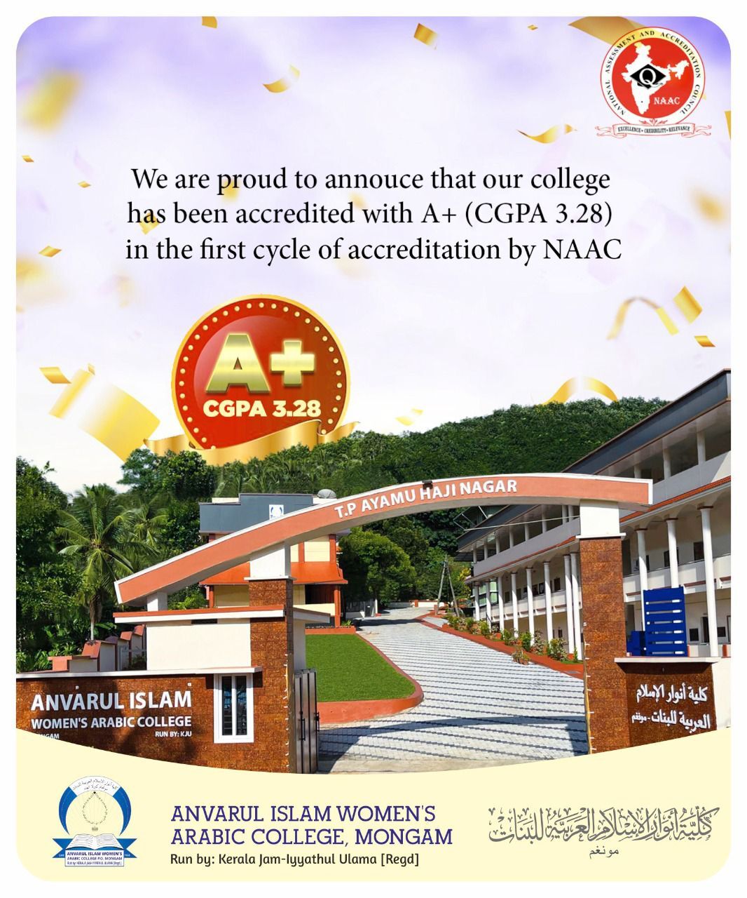 Accredited with A+ (CGPA 3.28) in the first cycle of accreditation by NAAC